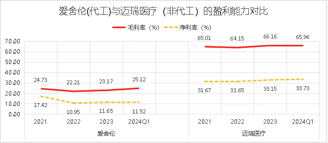 这也是为什么爱舍伦是中国医用卫生材料和敷料领域的龙头企业(市场份额排名前10),但盈利能力不高的原因。与国内领先的医疗器械迈瑞医疗(非代工)相比,毛利率高达66%,净利率在33%左右。爱舍伦的盈利能力仅为迈瑞医疗的1/3。,利率在23%左右,净利率在11%左右。