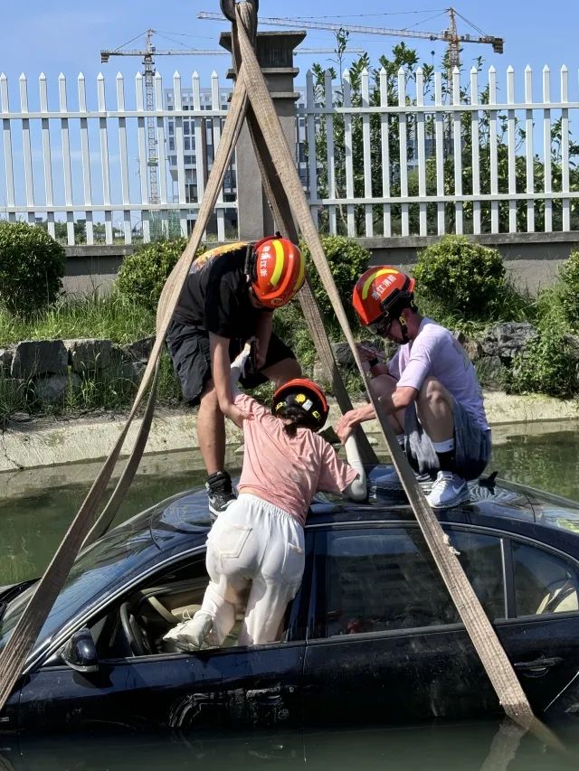 起初,车辆被吊机放入池塘,水位刚好没有通过车辆底盘。旁边的消防员说,当他们发现自己被困时,他们首先能做的就是理性,这是逃生和自救的黄金时期。被困人员应立即解开保险带,打开电子中控锁,迅速逃离车门、窗户和天窗。