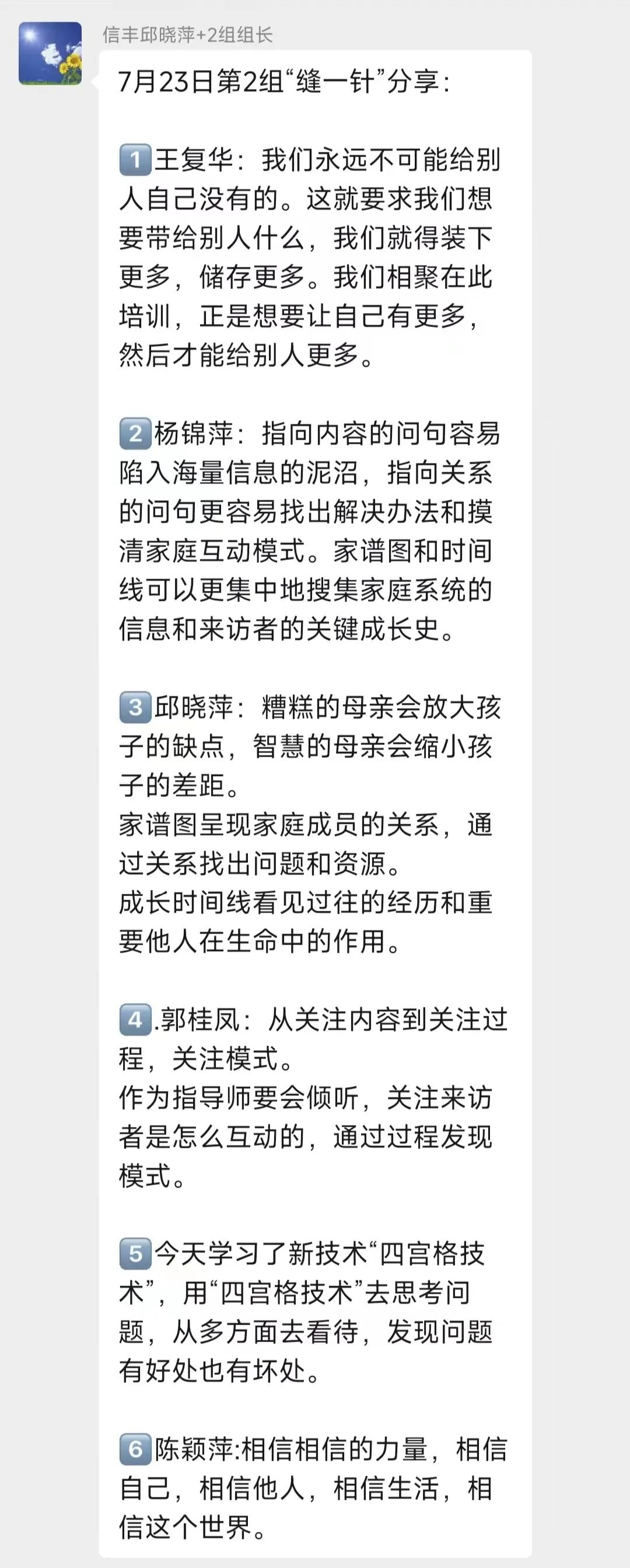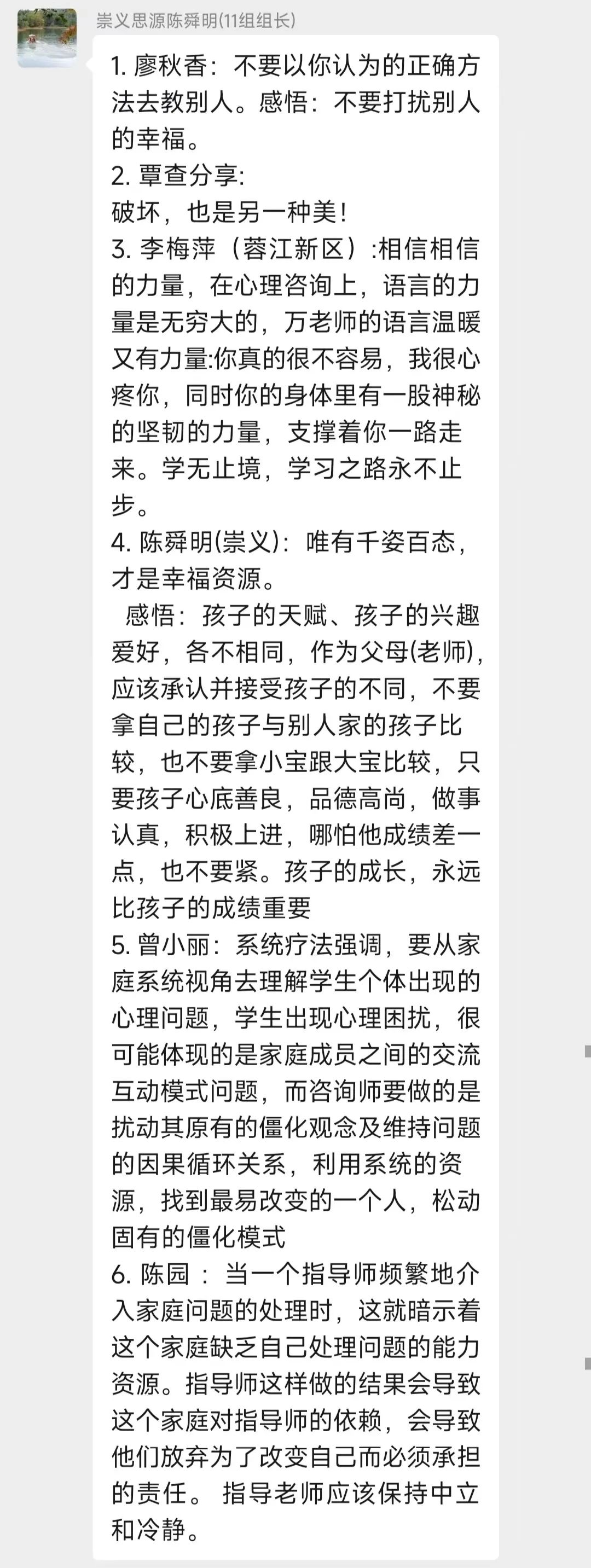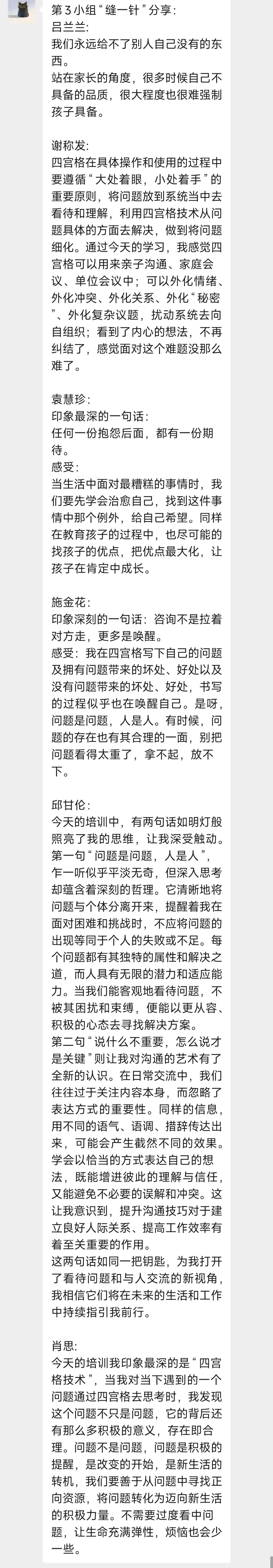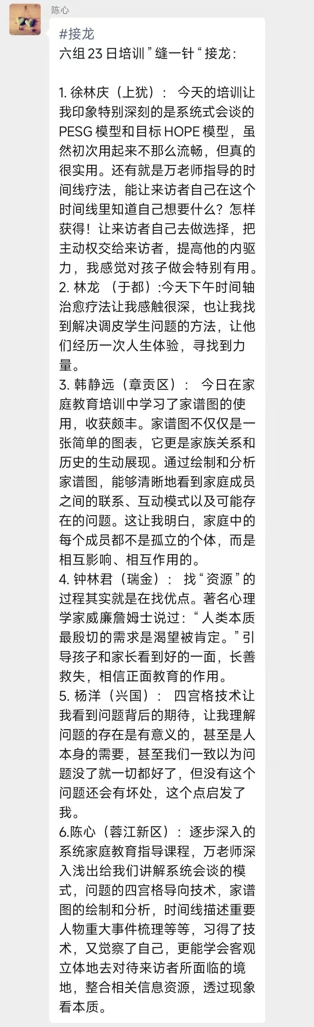 学生在学习中操作流程、具体实施方法和实践训练,如四宫格、家谱图、时间线等。,并当场感受到真实案例的具体指导。他们都表示受益匪浅,将在后续的具体工作中实施所学内容。
