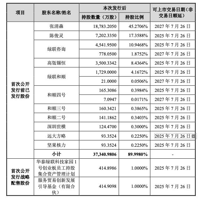绿联科技创始人张清森在IPO之后,持仓约45.27%。;陈俊灵持仓17.36%;大约8.44%的高淳锡恒是绿联科技的第四大股东,也是该公司最大的机构股东。