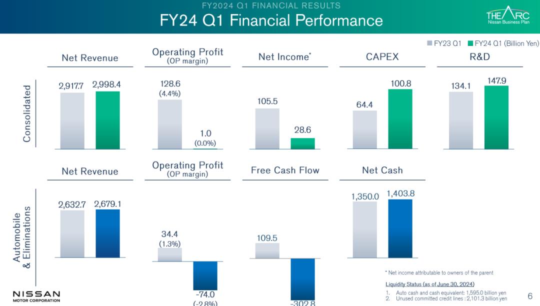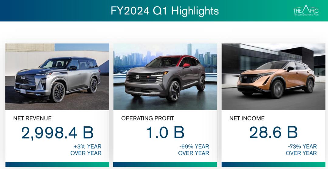 根据日产汽车的说法,这是2024年第一财季的财务报告数据。这是因为在中国,日本许多企业的财务年度开始于4月1日,所以第一财季就是四月到六月的财务表现,也就是国内常规的第二季度财务报告。