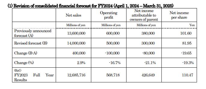 合并后的营业利润仅为10亿日元(约4717.9万元人民币),同比下降127.6%,营业利润率更高。无限趋近于0%,下降4.4%,其纯利润约286亿日元(约13.49亿人民币),同比暴跌73%。