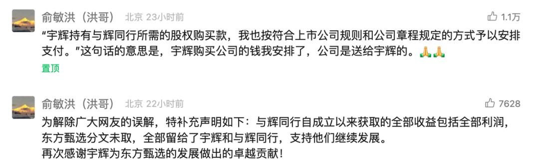 公告对交易感到困惑。董宇辉是如何支付0.8亿元的?至少是歧义。然后俞敏洪回应了问题,明确提出这笔钱由他支付,与辉同行由他个人“送”给董宇辉。