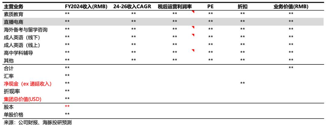 海豚君的预期比市场稍微保守一点,但中性预期下的估值还是会比目前的市值高很多(不包括这次事件后资金对公司管理层的性格折扣)。具体估值如下,仅供参考。长桥客户可以解锁所有数据到长桥App「动态-投研」频道搜索同名文章: