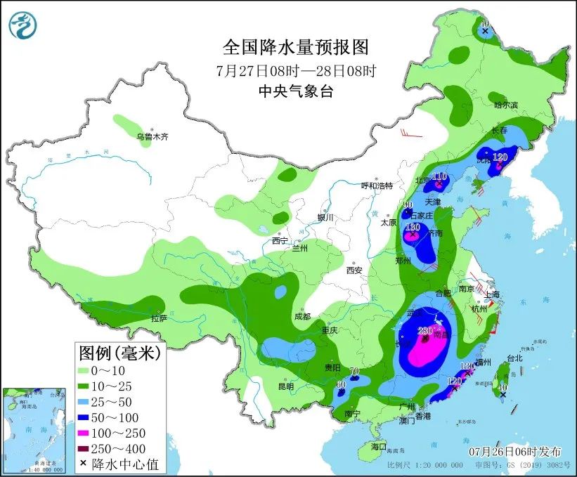 7月27日08:08:08:08:00,吉林东南部、辽宁、河北、天津、山东西部、河南北部、湖北东部、安徽北部和西南部、湖南东部、江西、广东北部和东部、福建中南部等部分地区暴雨。其中,河南北部、湖南东部、江西大部分地区、福建东南沿海地区暴雨,局部暴雨(250~280mm)。安徽、江苏南部、浙江等部分地区有4个~6级风,阵风7~8级。