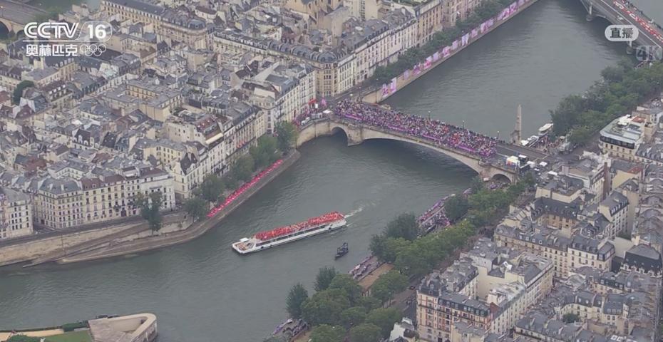 刚才,乒乓球运动员马龙、花样游泳运动员冯雨高擎五星红旗,中国体育代表团运动员在塞纳河巡游。
