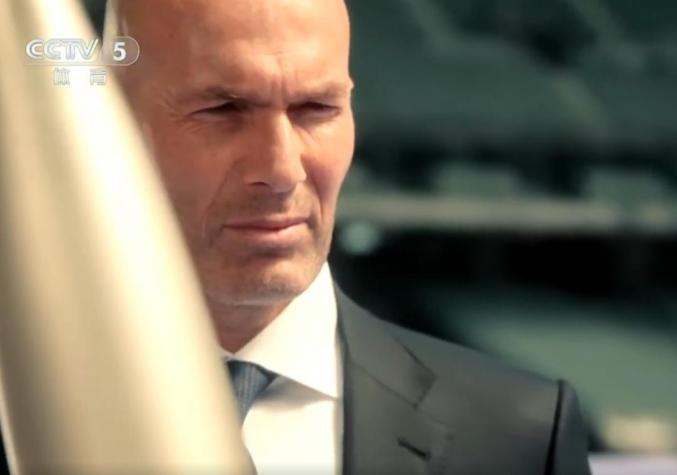 身穿黑色西装运输火炬的法国足球巨星齐达内