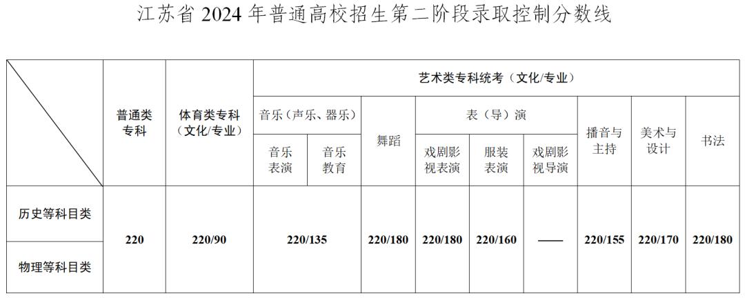 7月26日,省教育考试院公布了2024年江苏省高校招生第二阶段录取控制分数线(如下图所示),第二阶段志愿填报时间为7月27日至28日。