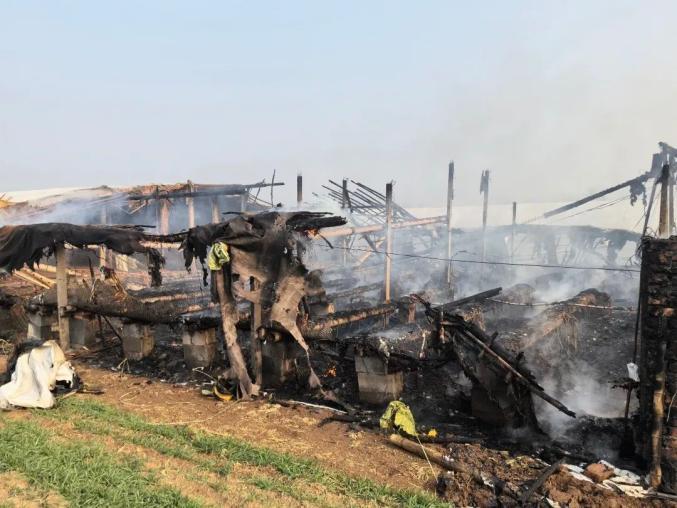 2023年12月27 商丘市夏邑县,一只养鸭的温室发生火灾。当救援人员到达现场时,现场充满了烟雾,温室的木制天花板倒塌了。经过全力扑救,火灾成功扑灭,部分温室被烧毁。幸运的是,救援及时,农场的鸭子得到了保存。据了解,火灾原因是温室内灯具和电路电气故障,周围可燃物被点燃,引起火灾。
