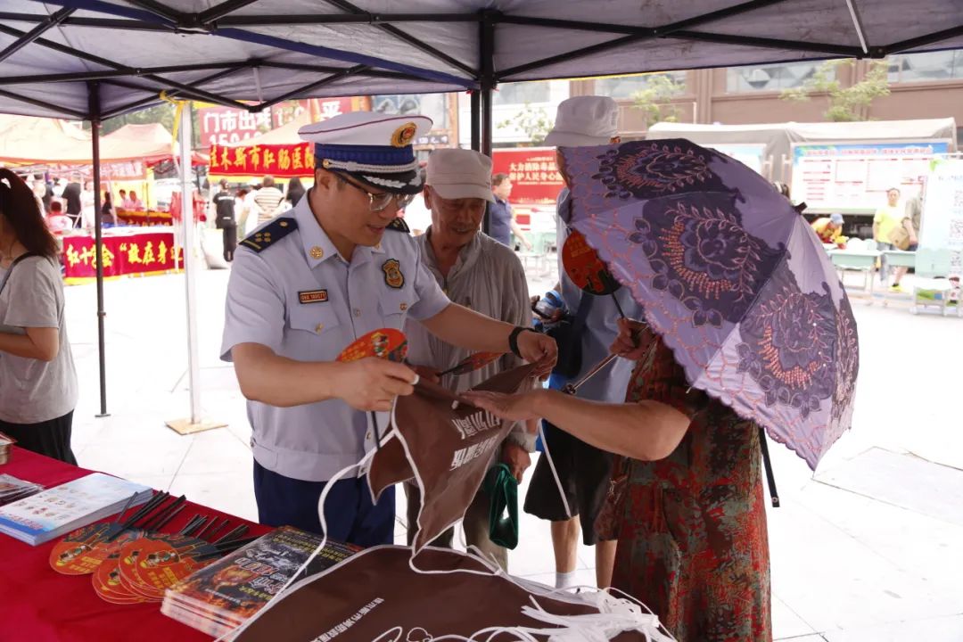 支队通过设立咨询点、展示消防主题展板、发放消防宣传资料等方式,向过往群众发放《家庭消防知识》、《燃气消防安全通知》、《电动车消防安全提示》等宣传提醒。,并发放各种宣传资料,包括环保购物袋、小粉丝、消防罩等。,印有消防安全常识,赢得了群众的好评。