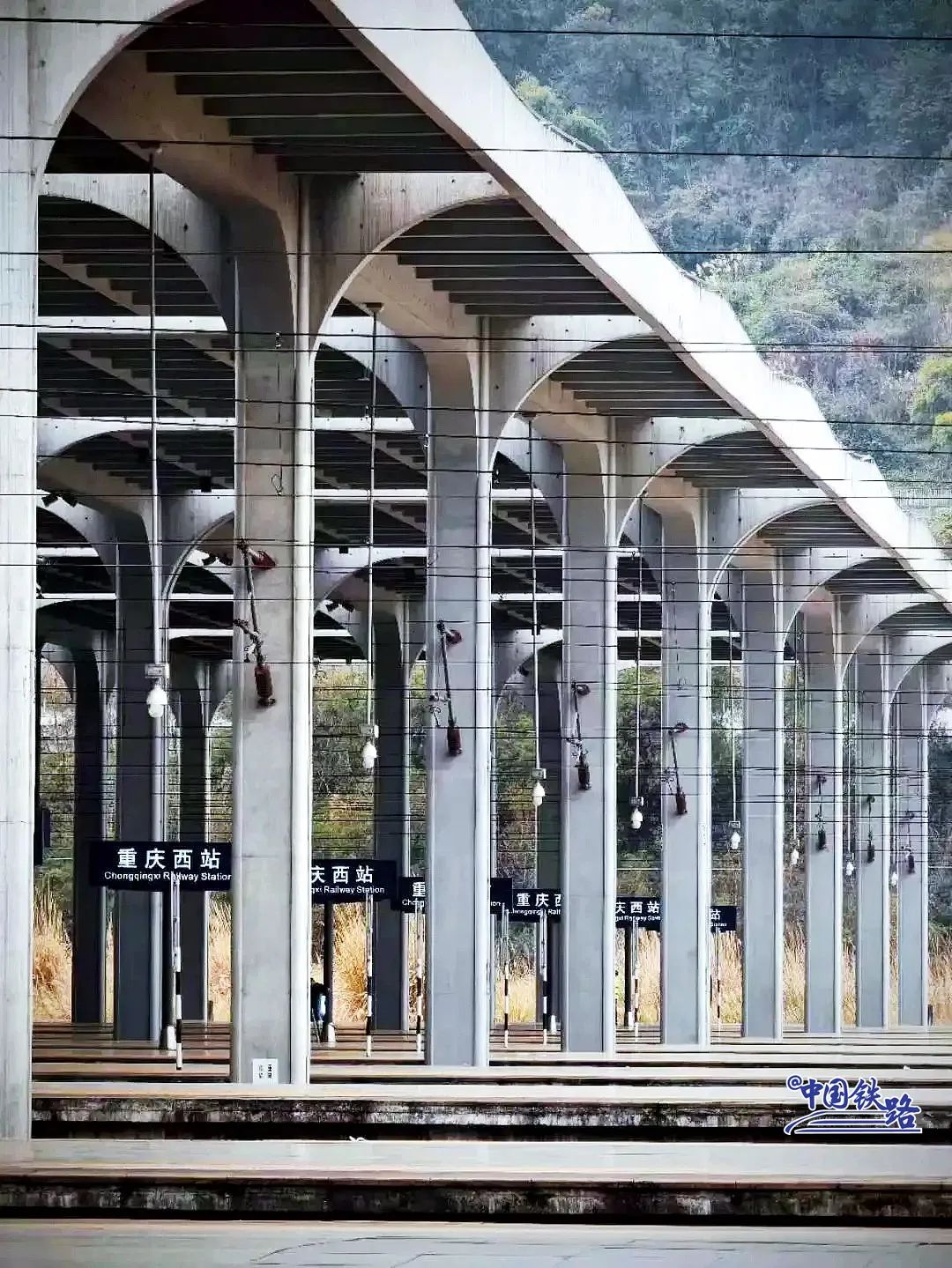 整个重庆西站造型体现了“英雄之城”的设计理念,体现了重庆红岩文化的精神,融合了岩层与江水刚柔并济的建筑元素。