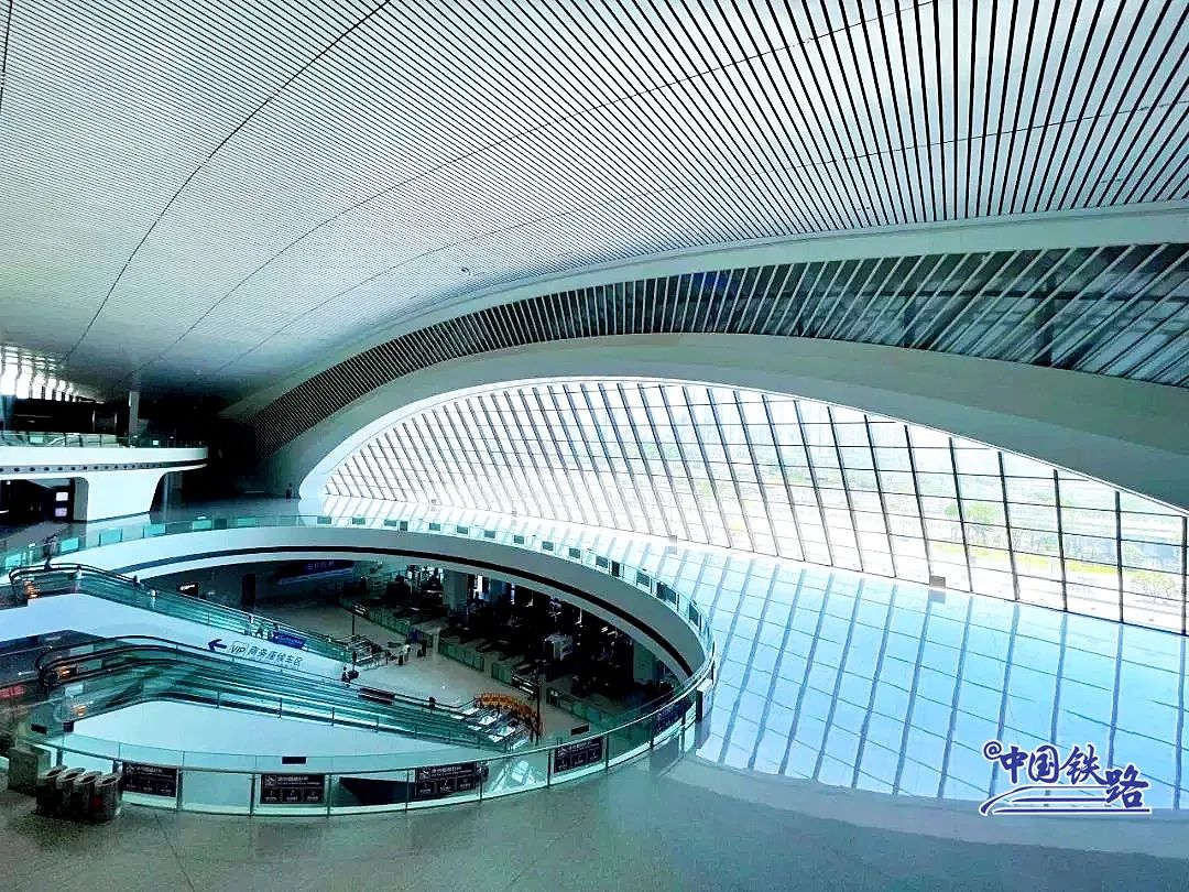 为了增强乘客的出行体验,节能低碳从规划之初就深深地刻在成都东站的“基因”中。车站外墙采用玻璃幕墙,建筑物的天窗和玻璃幕墙白天可以充分利用自然采光。