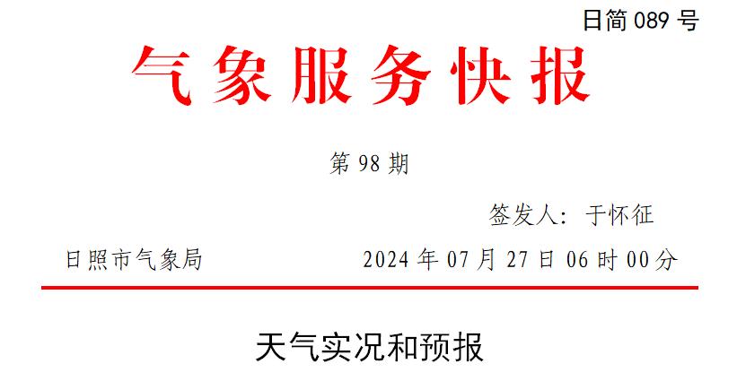 日照气象台继续发布台风蓝色预警。今天白天到晚上,有雷雨或阵雨,部分雨量较大,东南至南风内陆5级,阵风7级。~8级,沿海及近海水域6级,阵风8级,~9级,海上7级,阵风9级~10级,最高温度约为30℃,最低温度约为27℃。