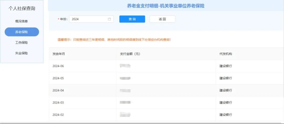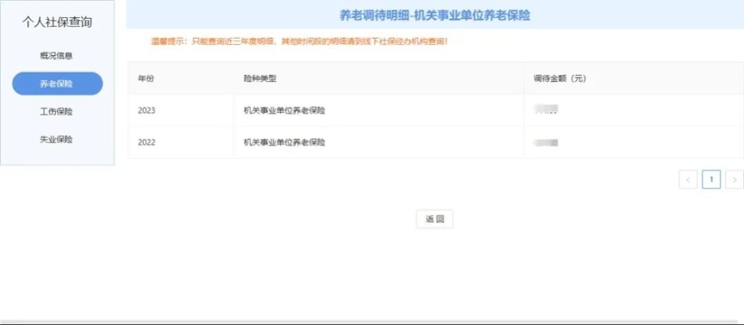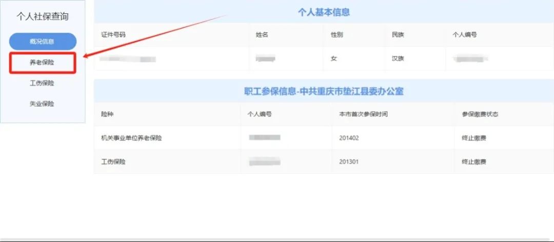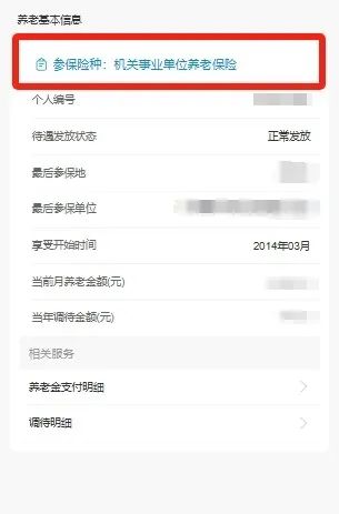 Ps:如果参保类型为机关事业单位养老保险,将反映基本信息的保险类型,其他查询步骤与城市公司基本养老保险相同。
