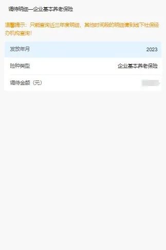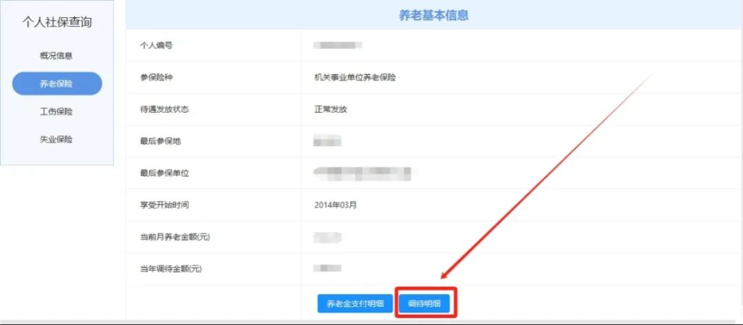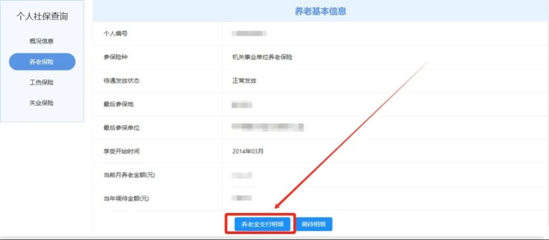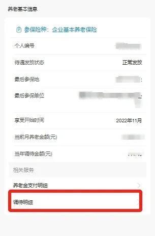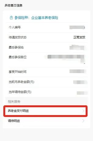 ④ 返回上一页,点击“养老金支付明细”,即可查询调待后1-6月补发的养老金额度。