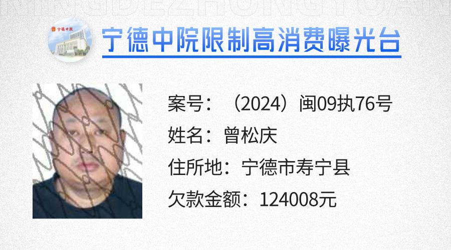 限高点名册 | 欠款12万不还!宁德中院实名曝光!