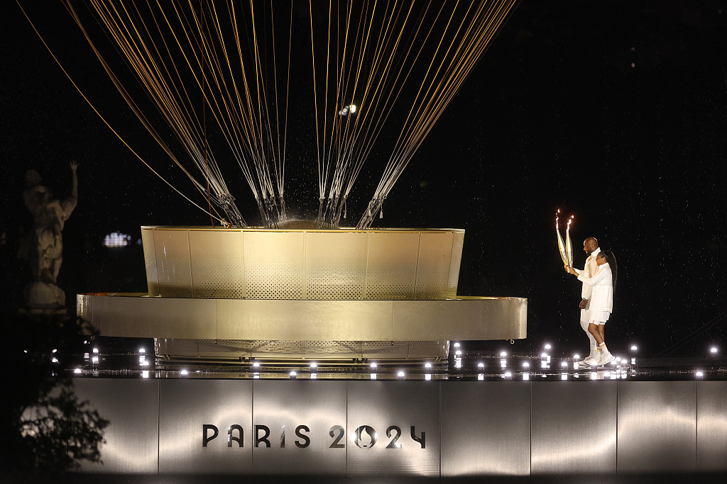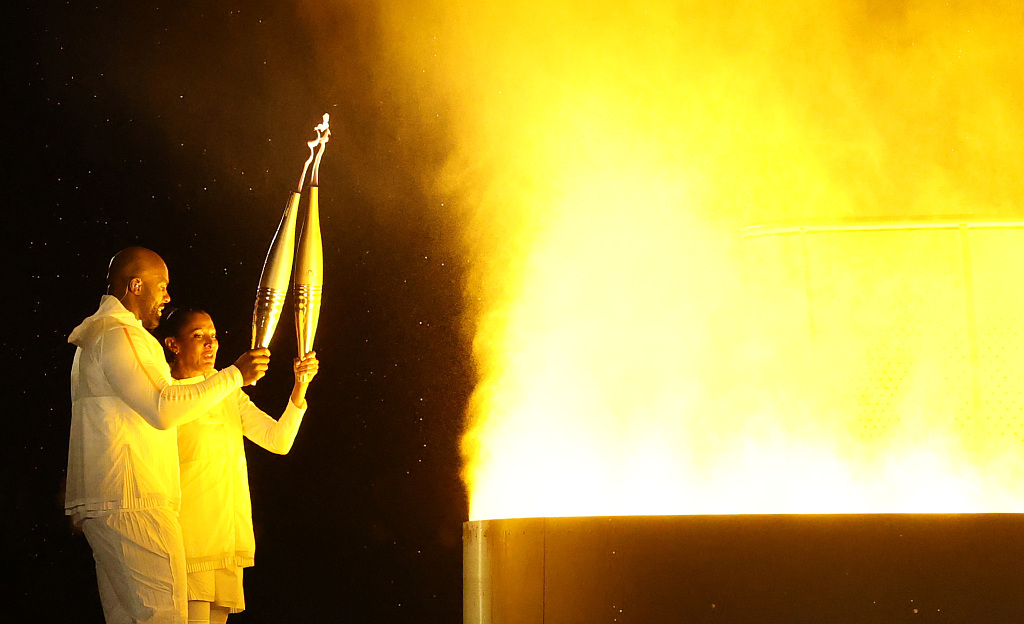 法国巴黎、巴黎奥运会开幕式,当地时间2024年7月26日,点燃了奥运主火炬。