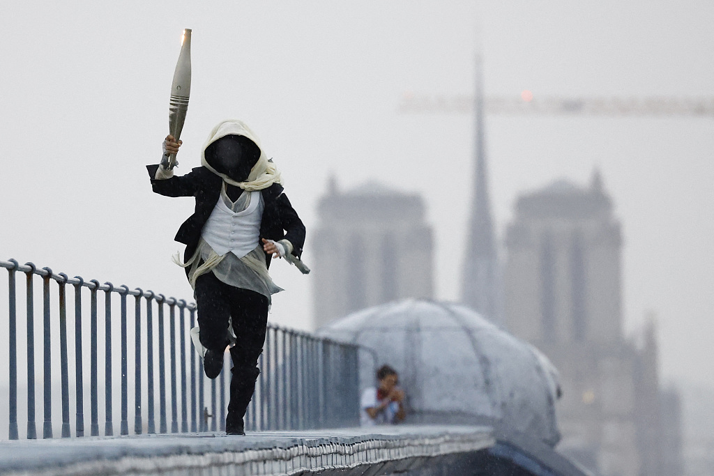 法国巴黎、巴黎奥运会开幕式、火炬传递等地时间2024年7月26日。