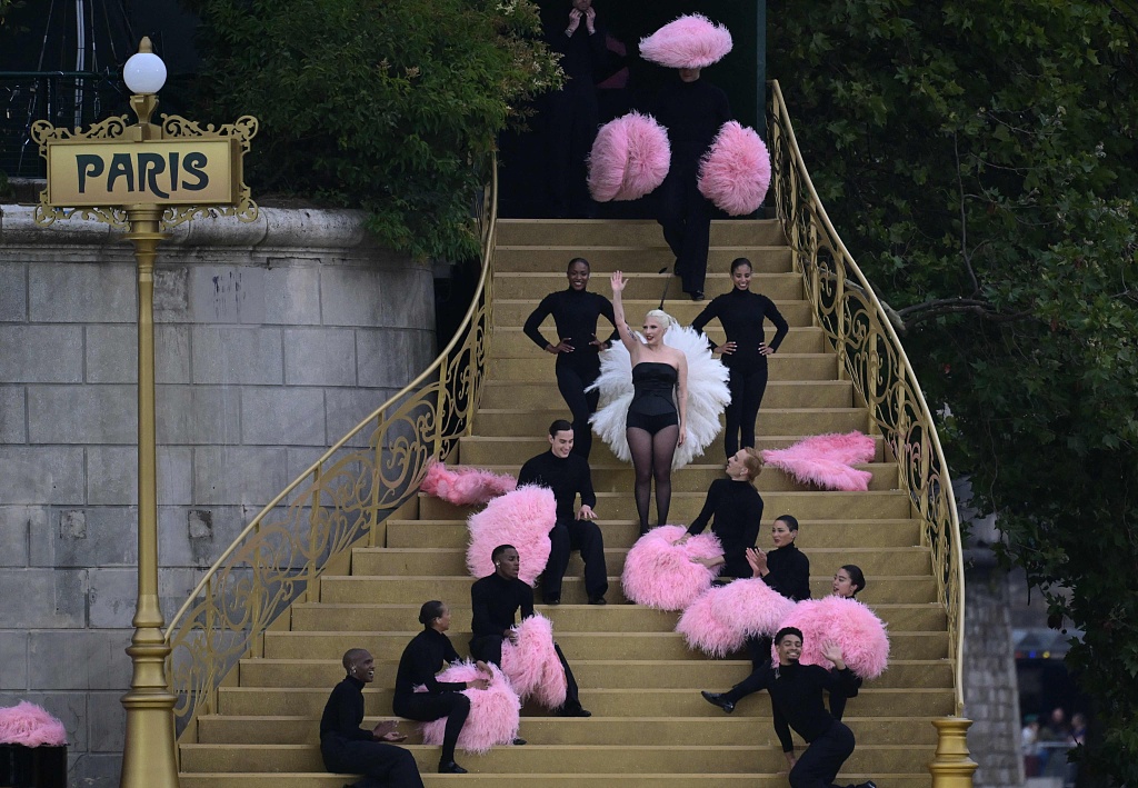2024年7月26日,法国巴黎、巴黎奥运会开幕式上,LadyGaga表演。