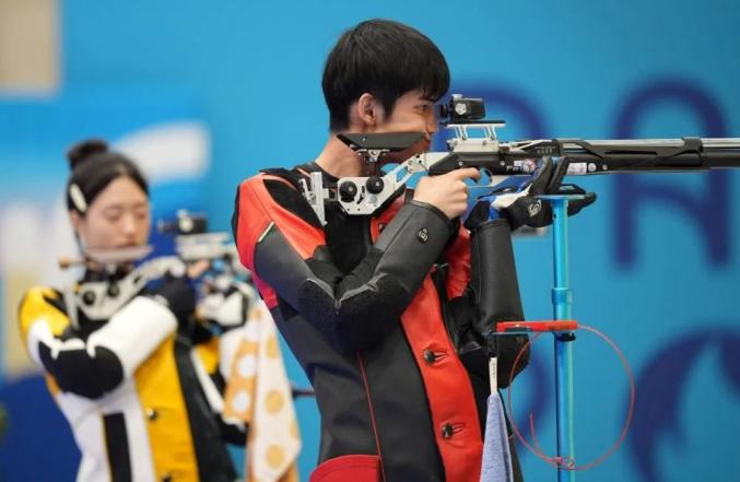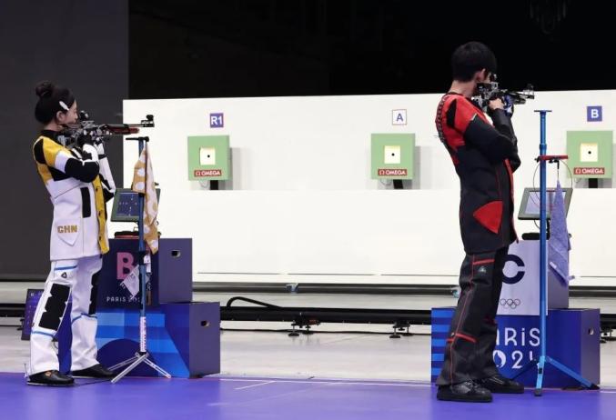 ↑在决赛中,黄雨婷(左)/盛李豪。