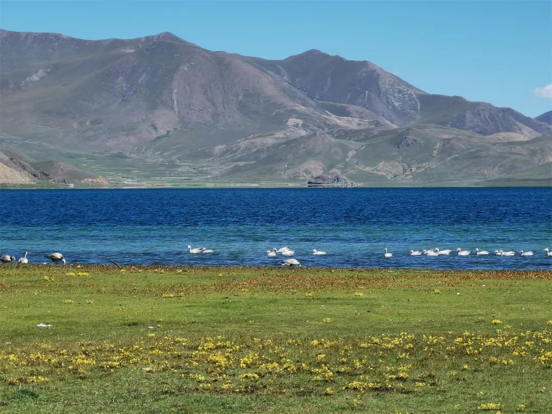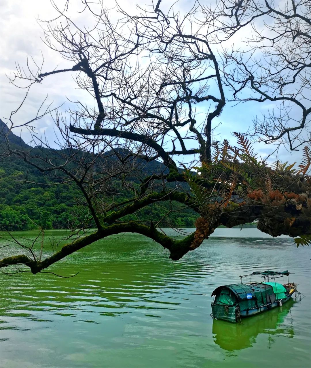 水波轻轻拂过岸边,悠闲自若,仿佛时光细语。