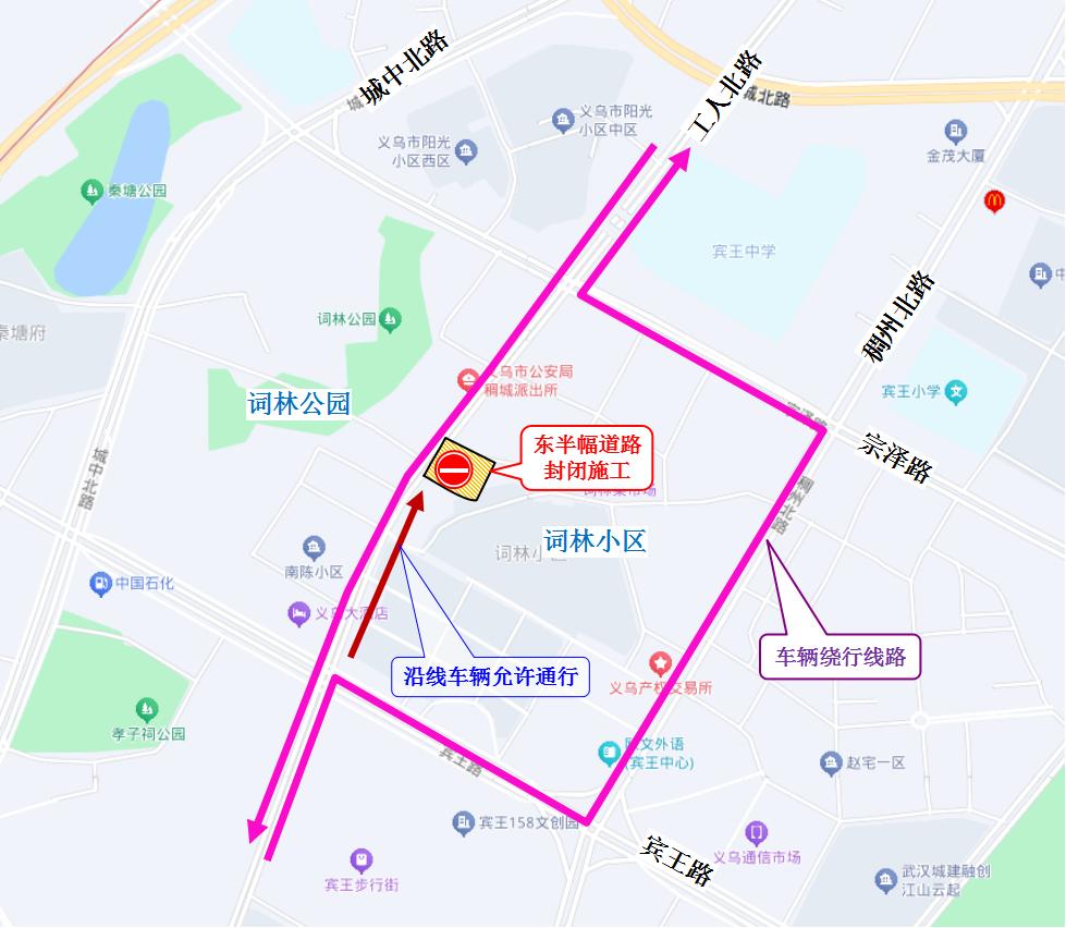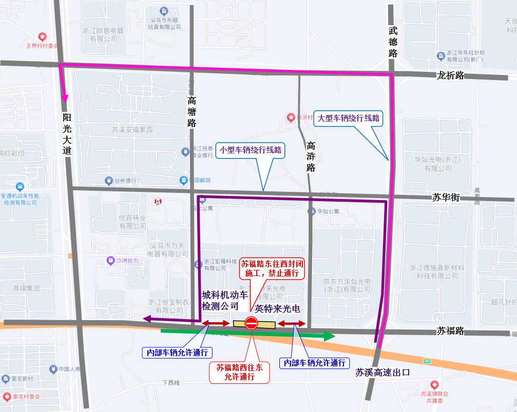 小型车辆:请到武德路-苏华街-高塘路-苏福路绕道