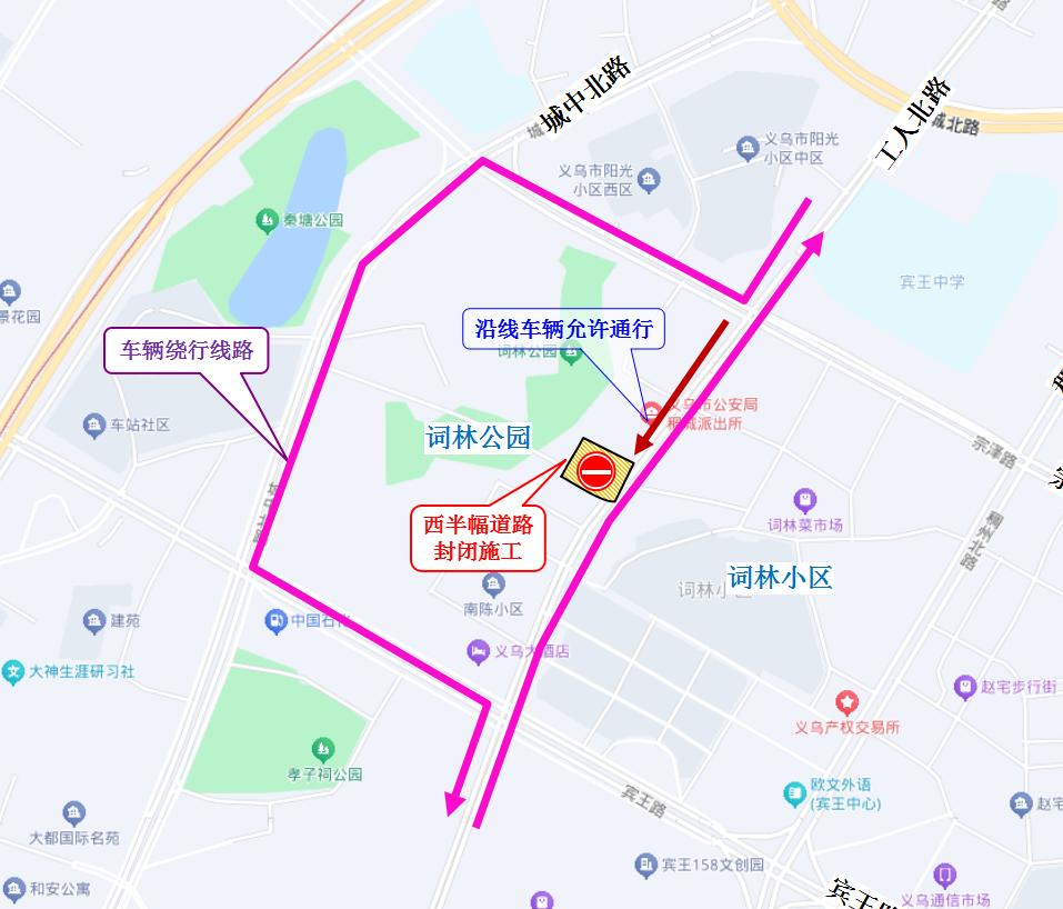 大车辆:请走武德路-龙祈路-阳光大道绕道