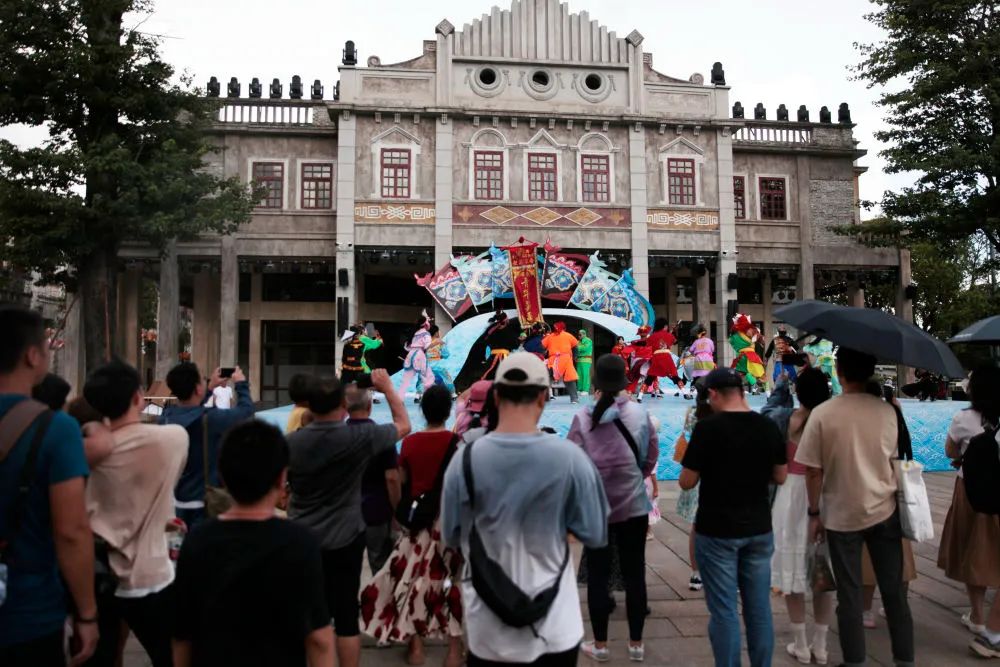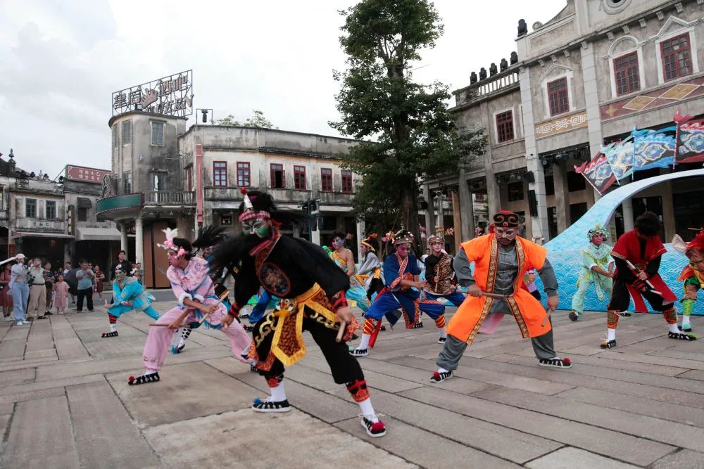 赤坎华侨古镇的英歌舞表演吸引了游客。新华社的照片