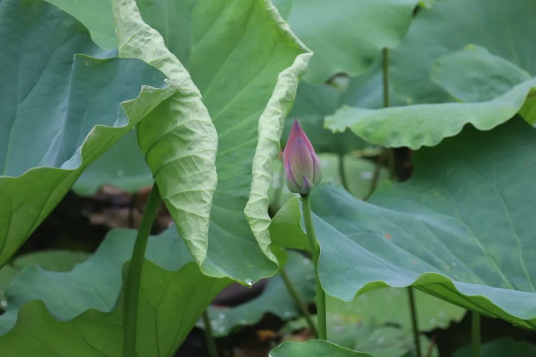 莲花盛开之前,完美地再现了周邦彦的“初阳干夜雨,水面圆润,一风一举”。水流到荷叶上,然后聚在一起,变成了圆圆的珠子,真的很可爱。荷叶看起来像一个“青壮年”,直立着,充满了新生的活力。