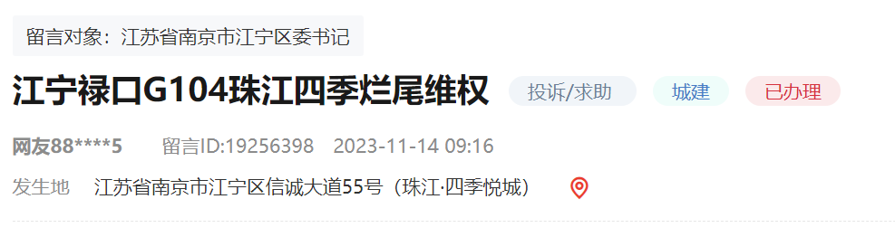在人民日报领导的留言板上,从2023年开始,很多网友反映,南京珠江四季悦城将于今年6月交付,但项目已经停工很久,没有交付的希望,想申请退房退款。