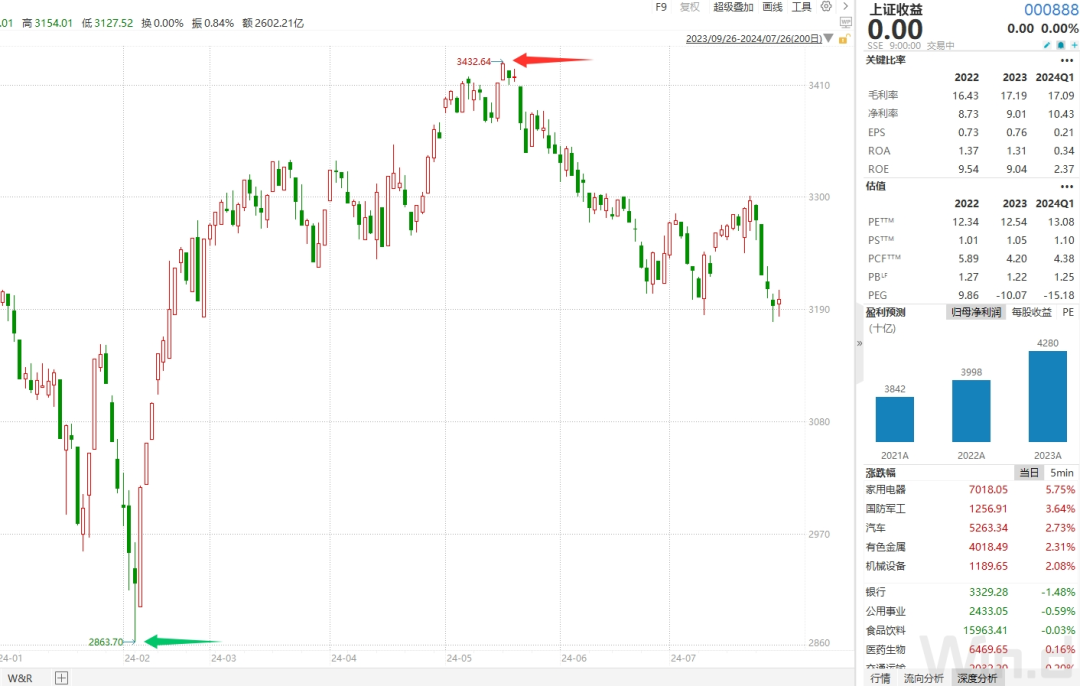 计算2020年7月22日至2024年7月26日的区间涨跌,上证综合收益指数累计下跌3.49%,上证综合指数累计下跌12.95%。可以看出,上证综合收益指数整体表现优于上证综合指数。