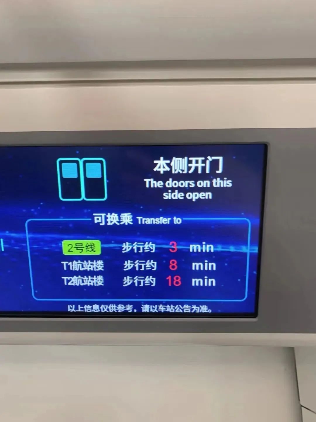 此外,列车还专门设置了轮椅停车区和拉环扶手等细节,充分照顾各类乘客的需求。无论是有特殊要求的乘客还是普通乘客,都可以在这里获得良好的服务和体验。但是,在每一侧的火车门上方,都有明确的指示,可以帮助乘客掌握行程的时间。
