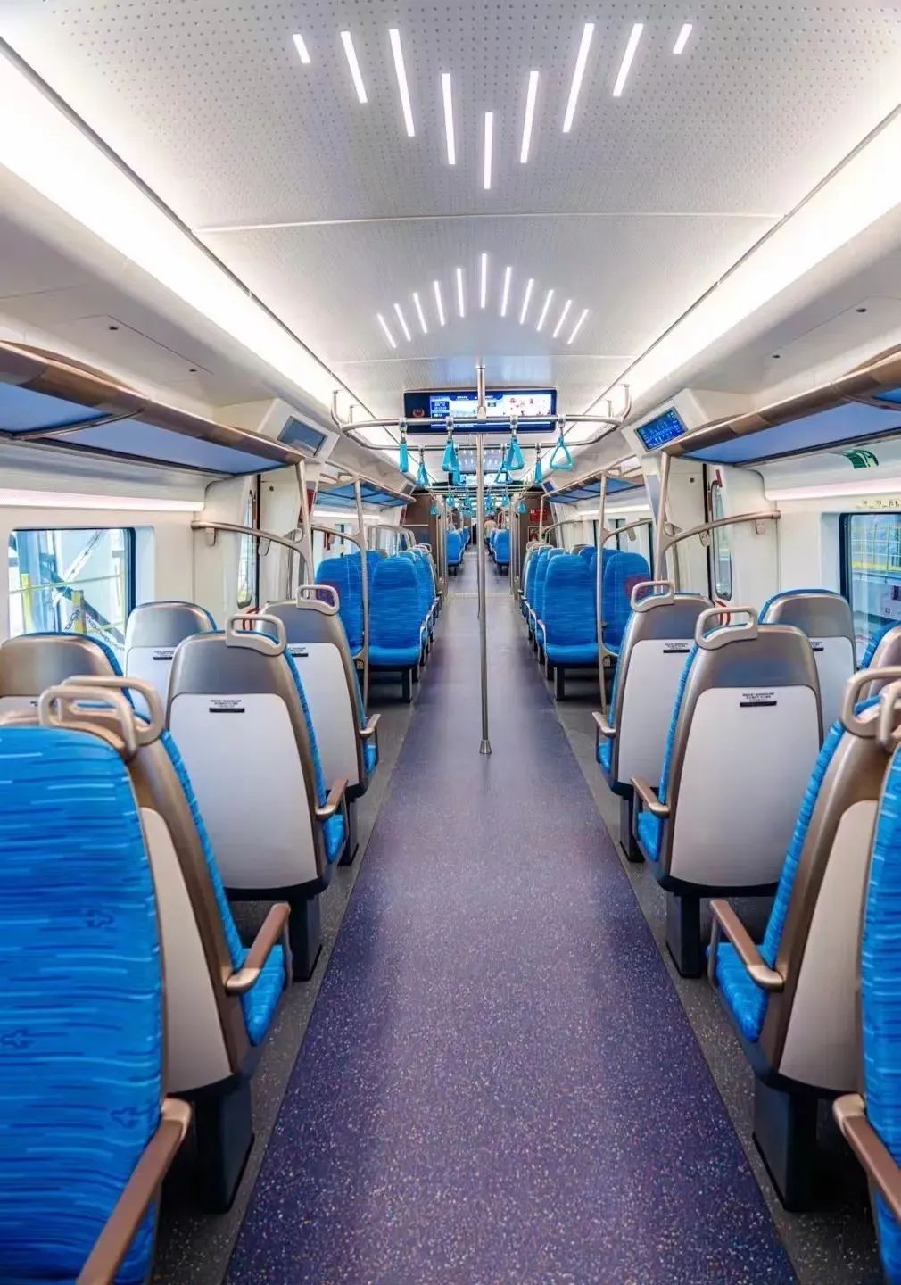 该线路上使用的城市C型列车是基于智能城际动车组技术平台的R&D和设计,融合了许多前沿技术和人性化理念,为乘客带来更舒适、更方便的出行体验。