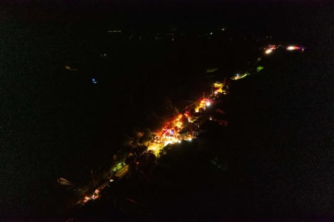 七月二十九日凌晨,在湖南省湘潭县易俗河镇四新堤周边拍摄的救援车辆(无人机照片)。新华社记者 陈思汗 摄