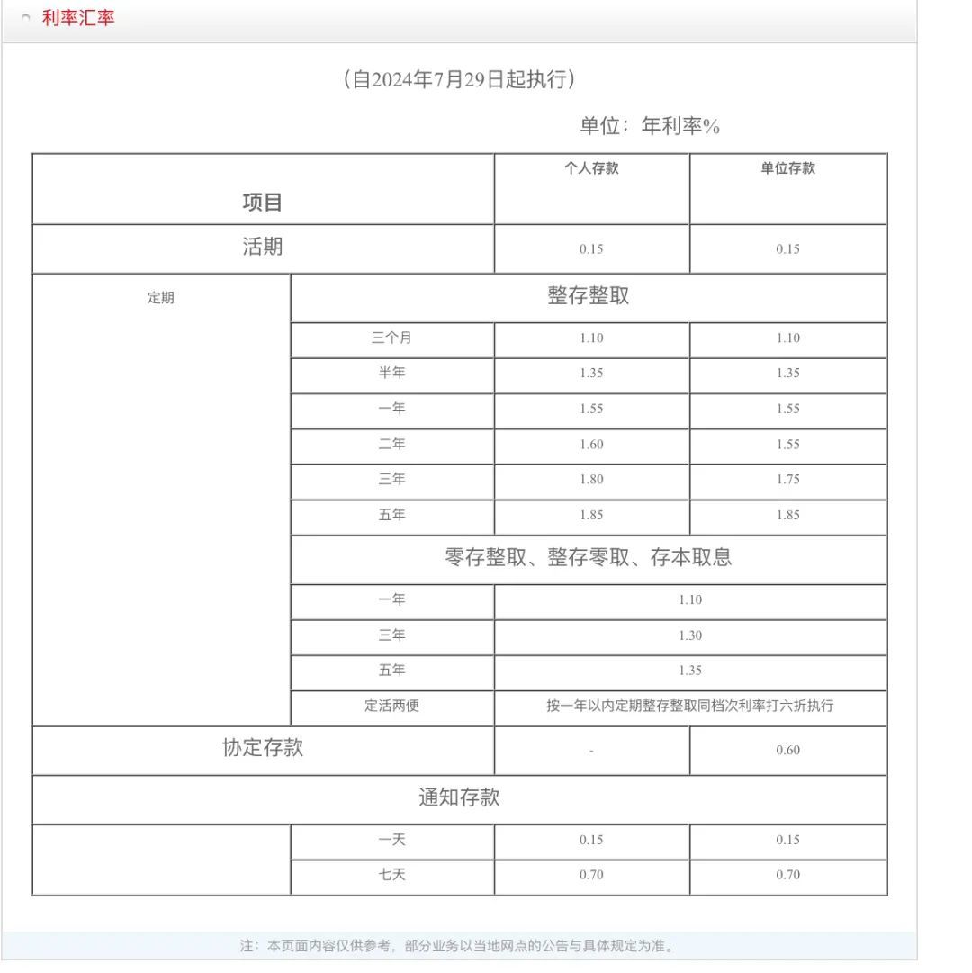 中信银行一年期、两年期、三年期和五年期人民币定期存款利率分别降至1.55%、1.60%、1.80%、1.85%。