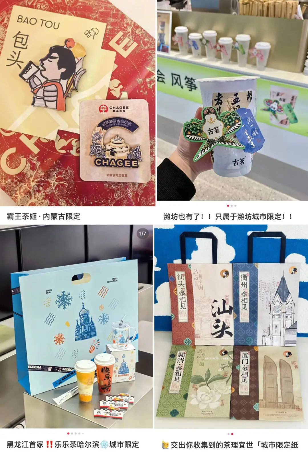 除城市限量商品外,新茶饮品牌还对周边地区进行限制,如霸王茶姬的冰箱贴纸,查理宜世的纸袋。