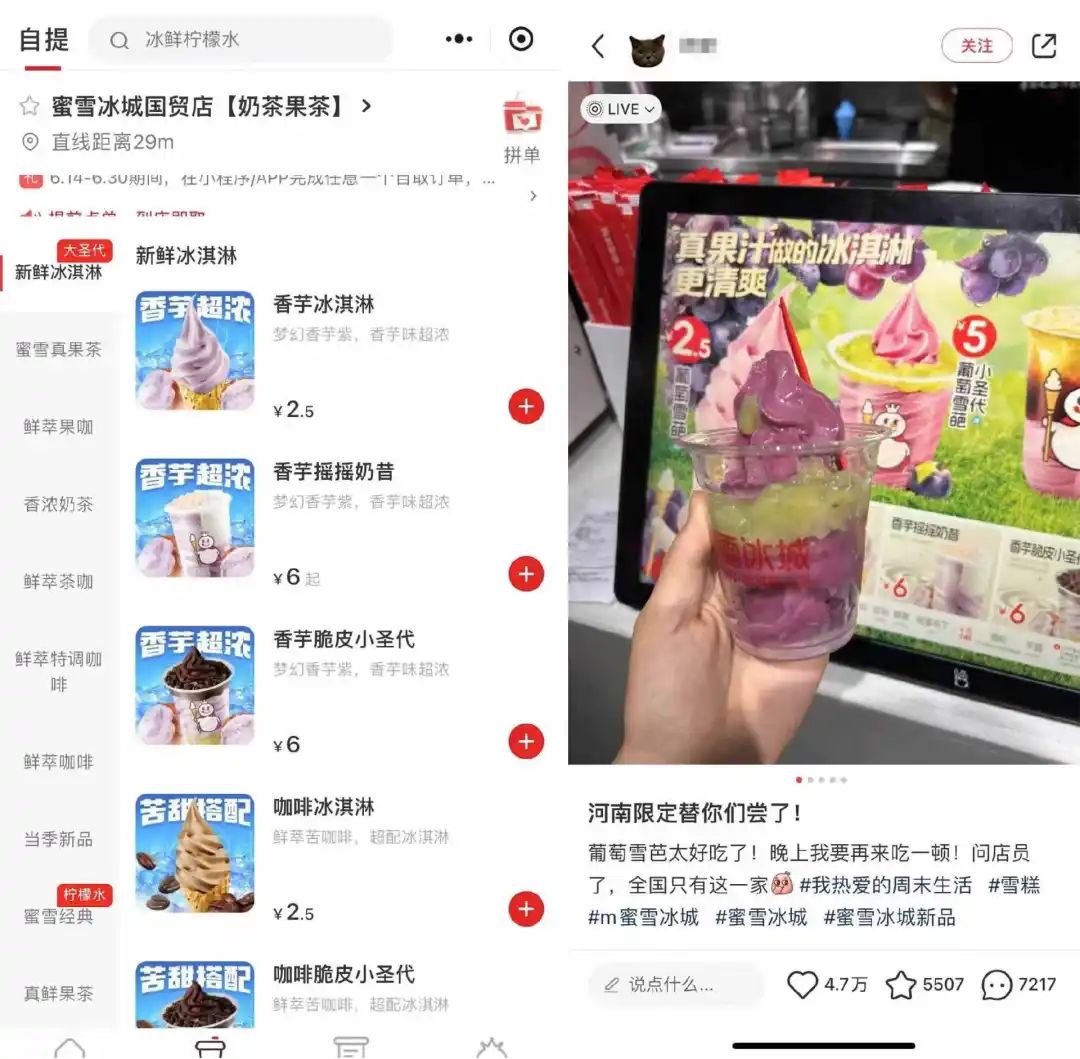 在河南炫耀蜜雪冰城,不仅有茉莉花奶绿,还有红提学校、红提雪摇摇冰、红提雪小圣代、红提雪酸奶冰、芋头脆皮小圣代、咖啡冰淇淋等。,以及蛋糕和甜点系列。