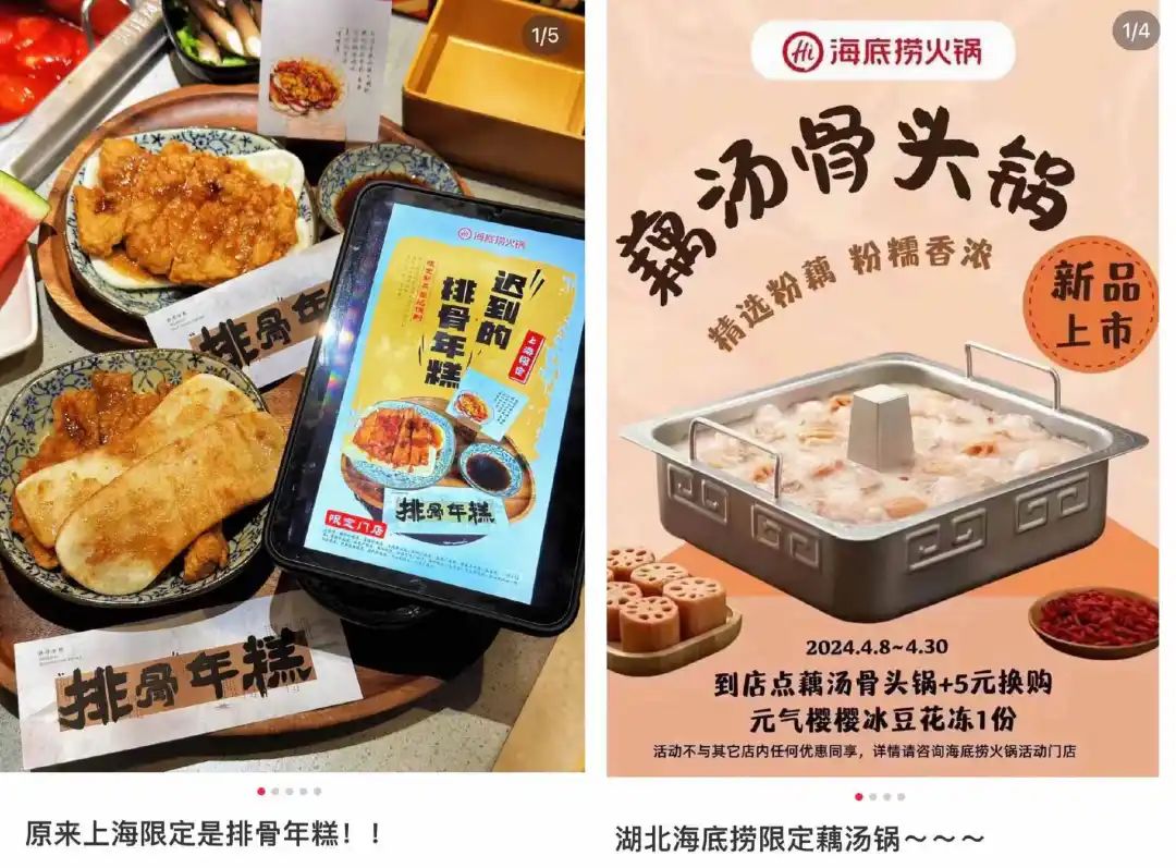 海底捞是最典型的例子,但海底捞被称为“城市菜单”和“区域创新”。比如河南店推出辣汤,武汉店推出热干面,广西店推出螺蛳粉,海南糟粕醋火锅,昆明火锅牡蛎等。