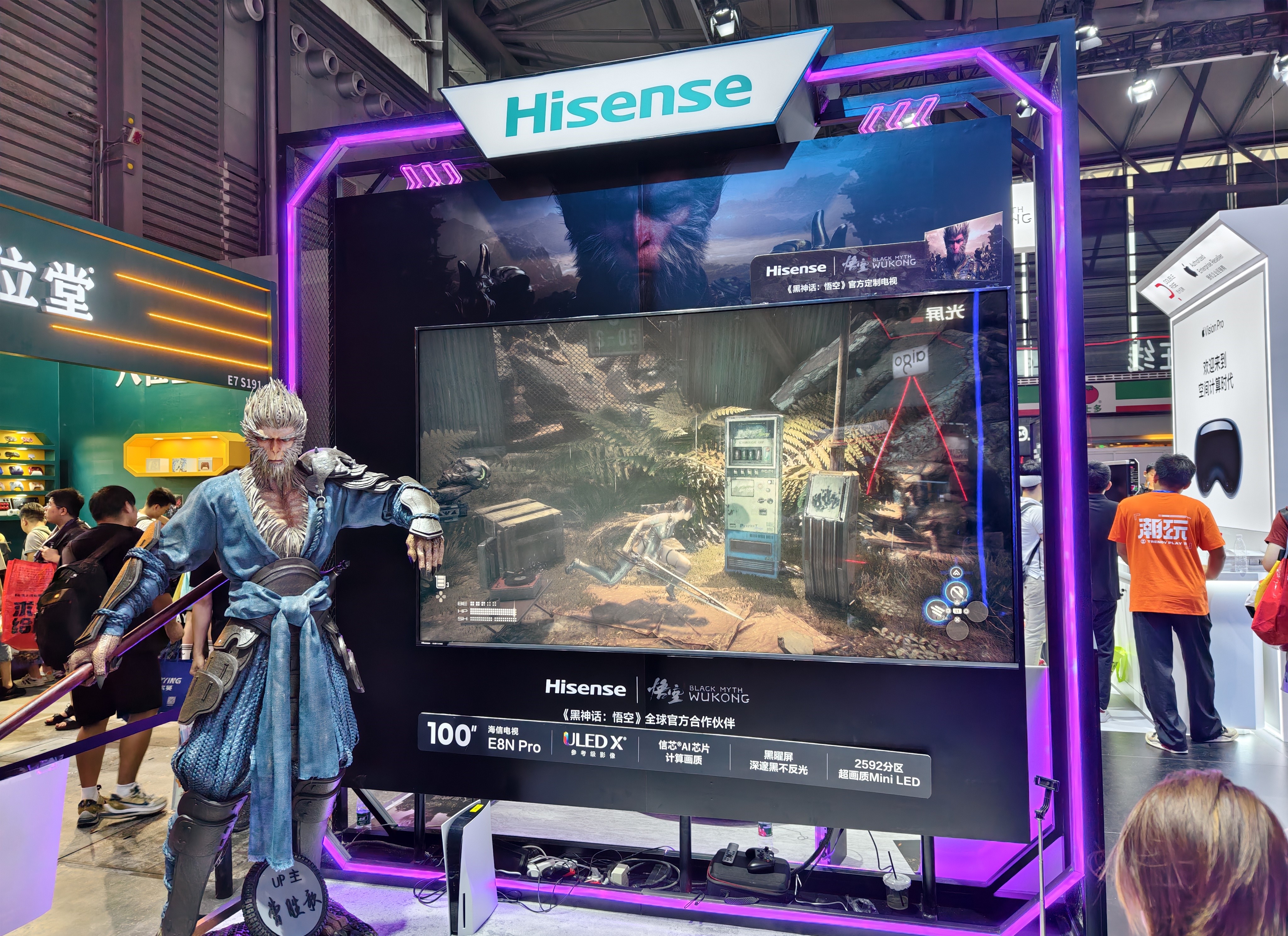 海信作为“黑神话:悟空”全球官方合作伙伴, E8N Pro 不仅有高达 100 一寸屏幕尺寸,同时作为一款 ULED X 采用最新一代Mini的高端电视。 LED显示技术依托自主研发的“信心”AI画质芯片、预训练大模型、屏幕和光学全链路技术,除了亮度、对比度和角度更高外,在画质上达到一流水平。能更好地满足游戏、运动等场景的画质分析要求,防止出现“拖尾”现象。