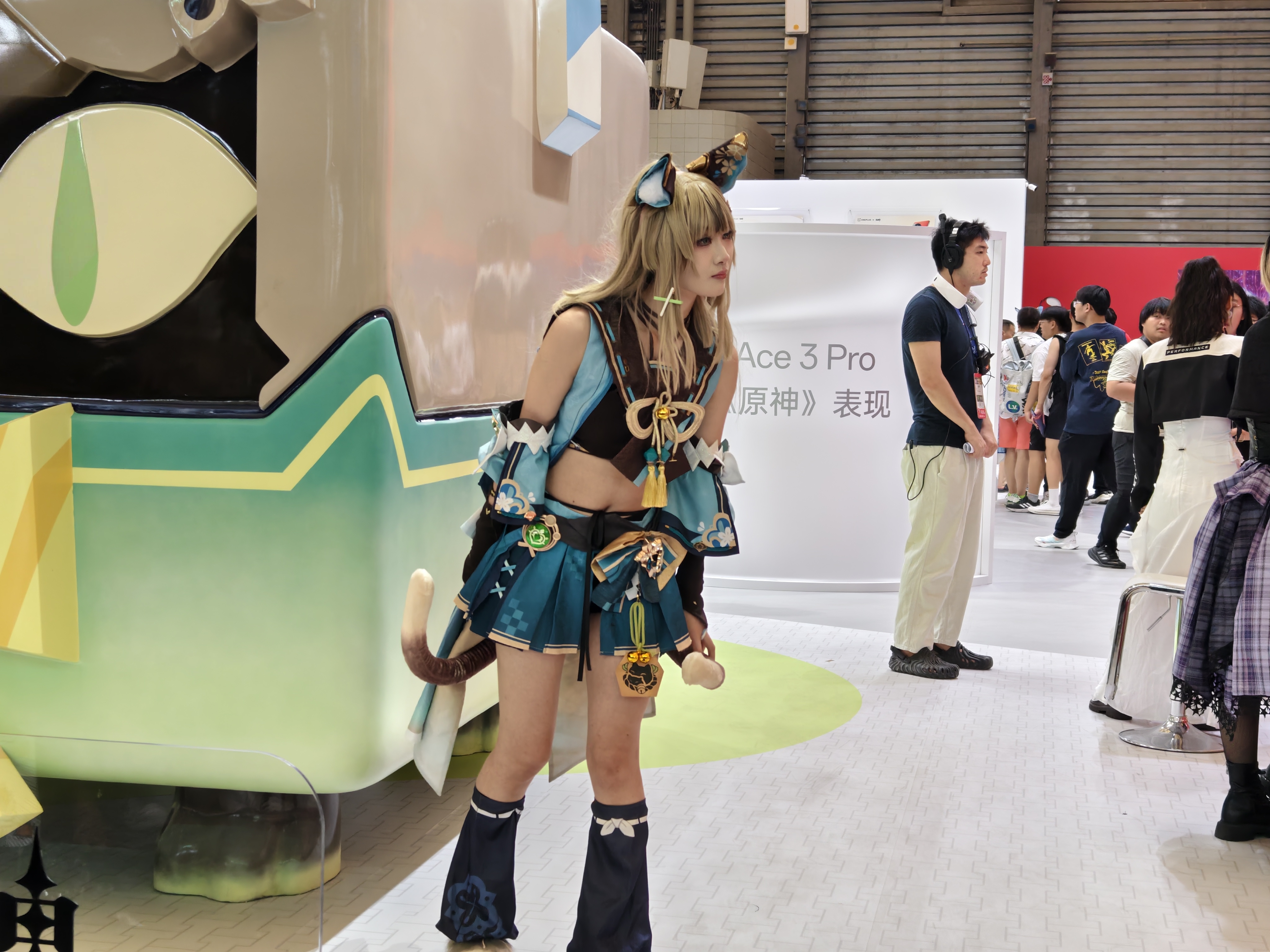 本届 ChinaJoy ,米哈游没有来,但是一加以另一种形式把它带到了这里 ChinaJoy,整个展览区域充满了米哈游元素。其中一个重要的宣传点是一加。 Ace 3 Pro 《原神》120完成 帧游戏表现。