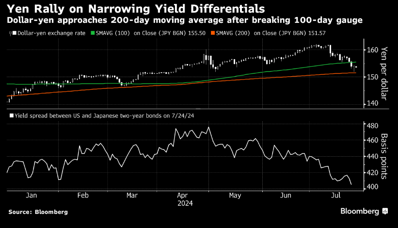 日元汇率的变化已经成为市场关注的焦点之一。自7月11日以来,日元对美元的汇率已经上升了约5%,这部分是由于市场对日本政府可能进行的外汇干预的猜测。