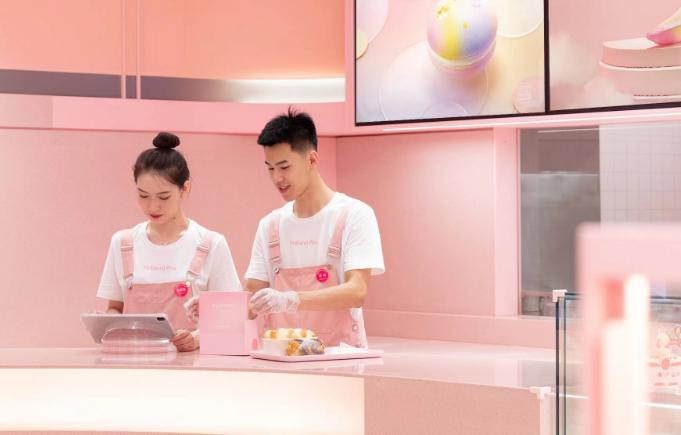 窦东徽解释说,粉色本身具有很高的认可度,可以“摆脱”环境,吸引人们的注意力。同时,粉色一般给人一种温暖、亲近、无攻击性的感觉,有助于缓解客户情绪,营造舒适的消费氛围,传达品牌温暖善良的形象。