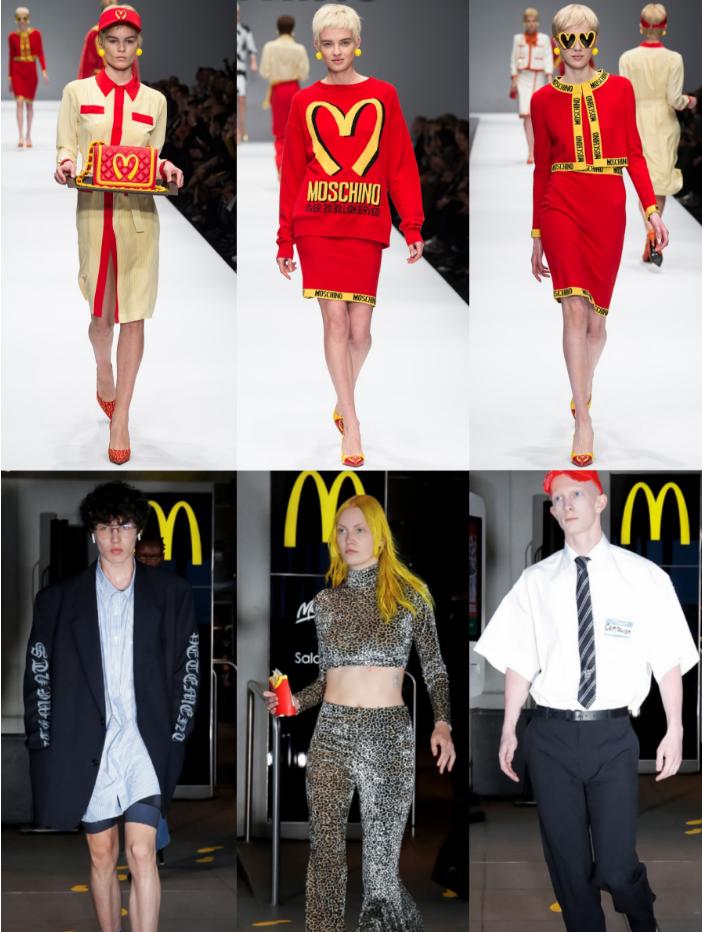 比如出现在各种服装秀上。2014年,肯德基元素被Moschino带到米兰时装周。2019年,Vetements将在巴黎香榭丽舍大街上选择肯德基进行节目。客人们一边看节目一边吃薯条和饮料。