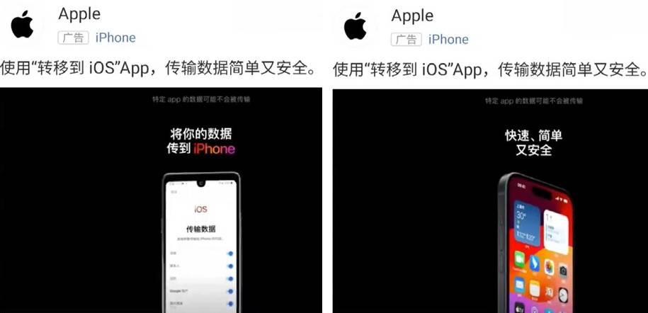 最近,苹果在社交平台上发布的一则广告似乎引起了一些争议。该广告宣传了苹果iOS的数据传输,同时出现了一款安卓手机和一款iPhone车型。