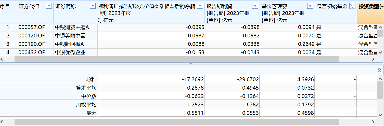 Wind数据显示,2023年,中银基金股票型和混合型基金本期盈利-29.67亿元,扣除原公允价值变动后仍亏损17.27亿元,但管理费收取4.39亿元。