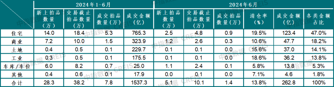 上半年各物业类型拍卖项目中,拍卖房屋交易截至拍卖53000件,总成交额765.3亿元,占各类拍卖成交额的49.8%。