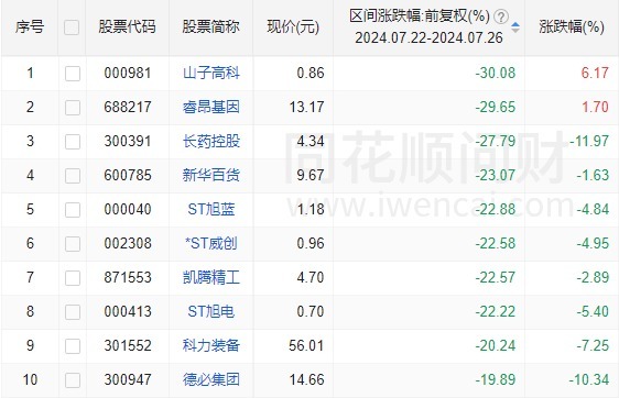 股票周涨,跌幅榜