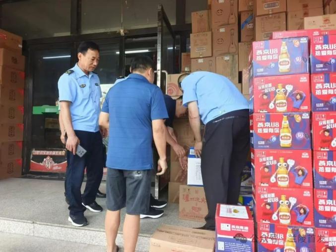 执法人员在超市仓库中发现了用于编码的设施,如编码机、编码机专用油墨、密封机、密封条等。,并在现场发现了700多箱过期的银麦啤酒,20多箱标有2024年6月出厂日期的银麦啤酒。经厂家工作人员鉴定,瓶体出厂日期不是原厂代码,涉嫌非法篡改。