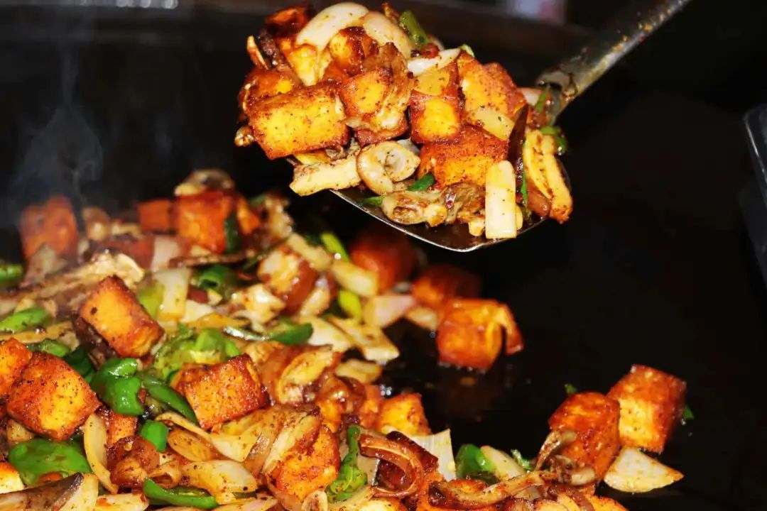 欲罢不能诱惑。温暖人心的炕锅,浓郁的乡愁,家的味道牵动着每一个流浪者的心。肉片鲜嫩,蔬菜美味。经过长时间的翻炒和加热,锅里的食材变得柔软可口,香气四溢。