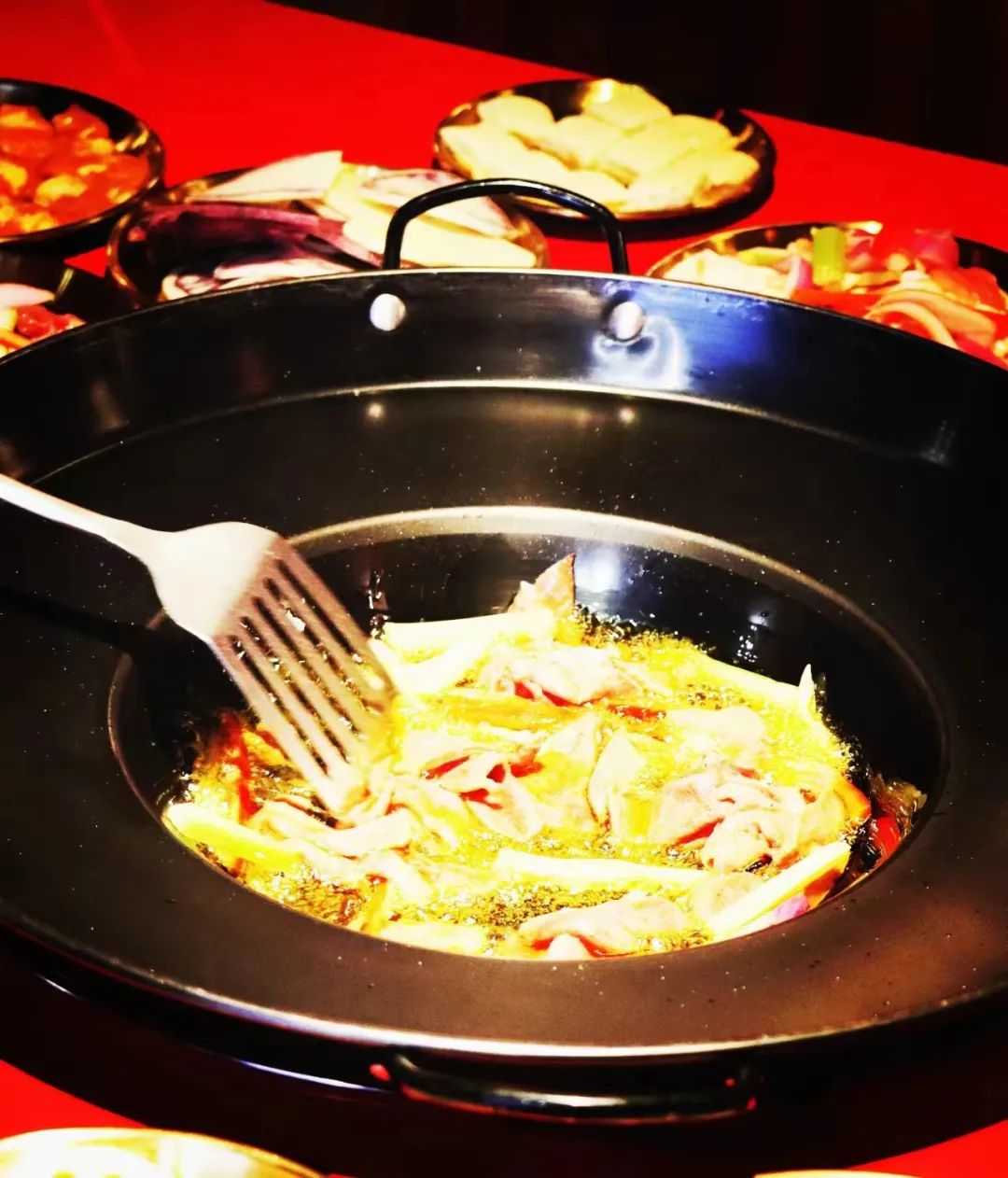 热气腾腾的火锅。五颜六色的食材在锅里滚动,美味的汤底让人垂涎欲滴。无论是新鲜的牛羊肉还是新鲜的海鲜,每一口都能感受到食材的原汁原味。还有各种调料供你做辣、酸、咸。让我们试试。